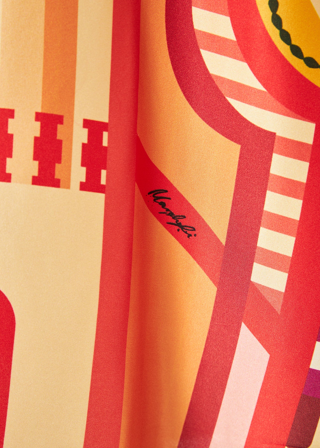 A breezy, elegant midi kaftan crafted in printed silk, accented with delicate cotton details and inspired by the palm-lined charm of Taormina’s Sicilian landscape.